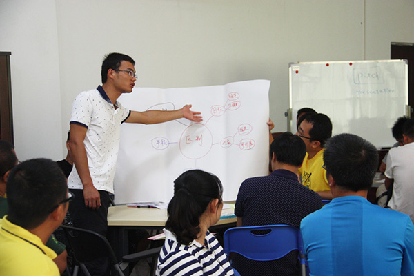 體驗(yàn)課由中國地質(zhì)大學(xué)博士、子謙國際創(chuàng)業(yè)教育學(xué)院首席專家、河北地質(zhì)大學(xué)創(chuàng)新創(chuàng)業(yè)教育學(xué)院執(zhí)行院長與教學(xué)總監(jiān)朱燕空作為主講。體驗(yàn)課以新常態(tài)下雙創(chuàng)發(fā)展及市場拓展為背景,就創(chuàng)業(yè)思維內(nèi)涵、體驗(yàn)創(chuàng)業(yè)思維之旅、創(chuàng)業(yè)思維與管理思維對(duì)比,與學(xué)員們探討交流雙創(chuàng)發(fā)展之路,布置各小組“制造未來”任務(wù),設(shè)想了創(chuàng)業(yè)之路所遇到各種機(jī)遇與困阻。朱院長表示,創(chuàng)業(yè)成長期,大部分創(chuàng)業(yè)青年不缺乏目標(biāo)和想法,著實(shí)選擇一個(gè)有效的路徑去實(shí)現(xiàn),路徑有很多,每條路徑都代表著一種可能性,并且充滿了不確定性,關(guān)鍵在于如何找到有效的路徑,需要我們?nèi)バ袆?dòng)、反思和調(diào)整;而不是過多的詳細(xì)規(guī)劃,注重逐步執(zhí)行。面臨不確定性,朱院長結(jié)合自身創(chuàng)業(yè)經(jīng)驗(yàn),與學(xué)員們探討分享創(chuàng)業(yè)新思維與企業(yè)管理模式,并運(yùn)用了大量案例對(duì)市場拓展做指導(dǎo)。課堂最后,朱院長與學(xué)員逐個(gè)交流創(chuàng)業(yè)相關(guān)熱門話題。